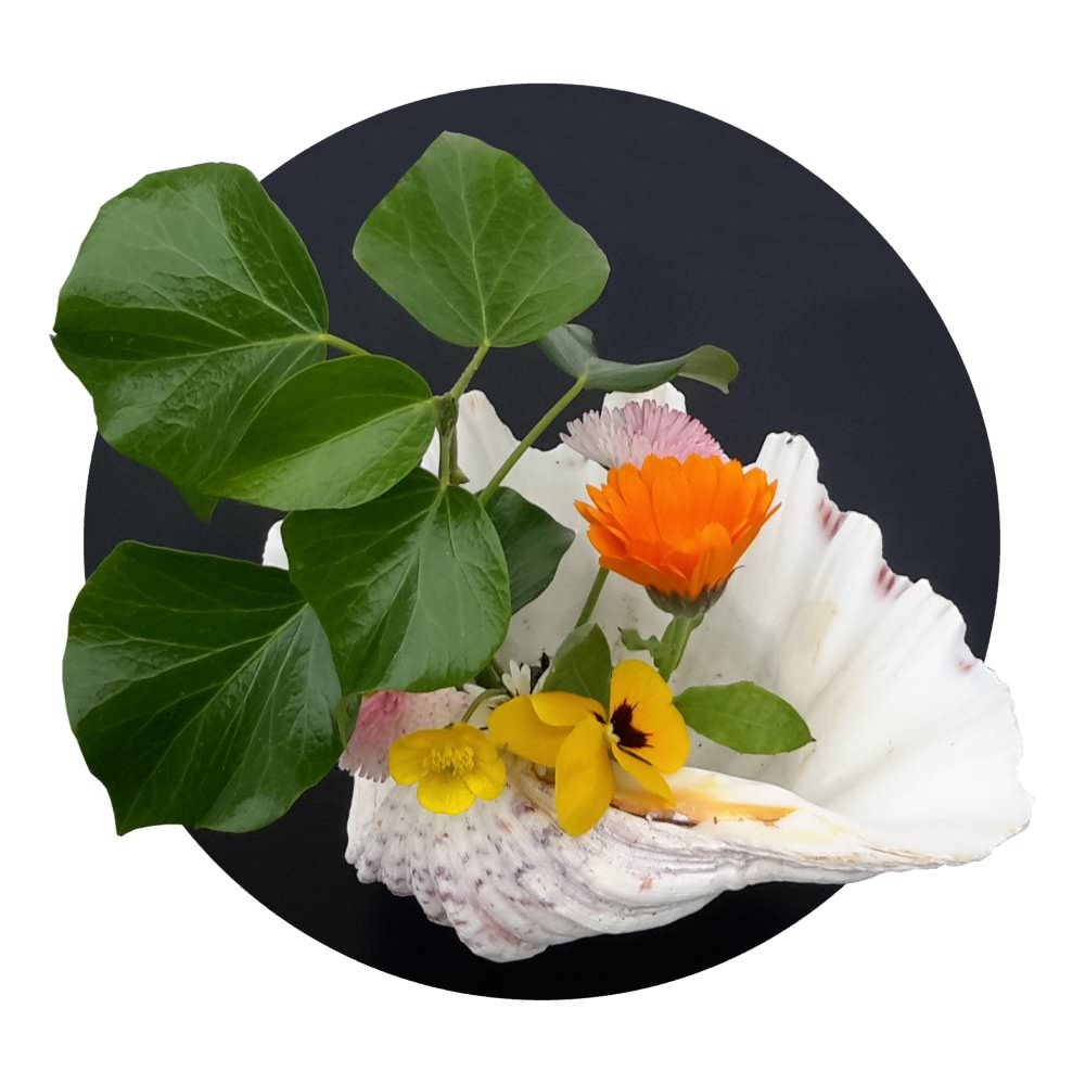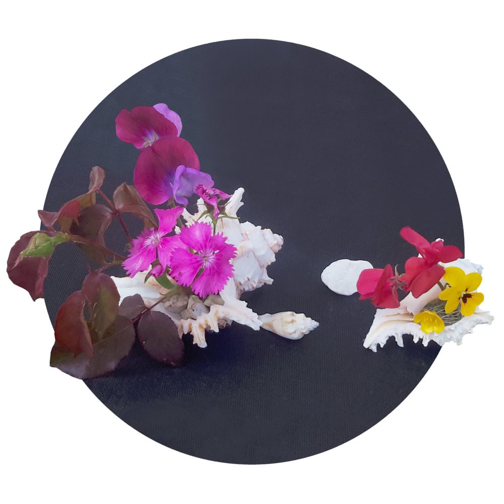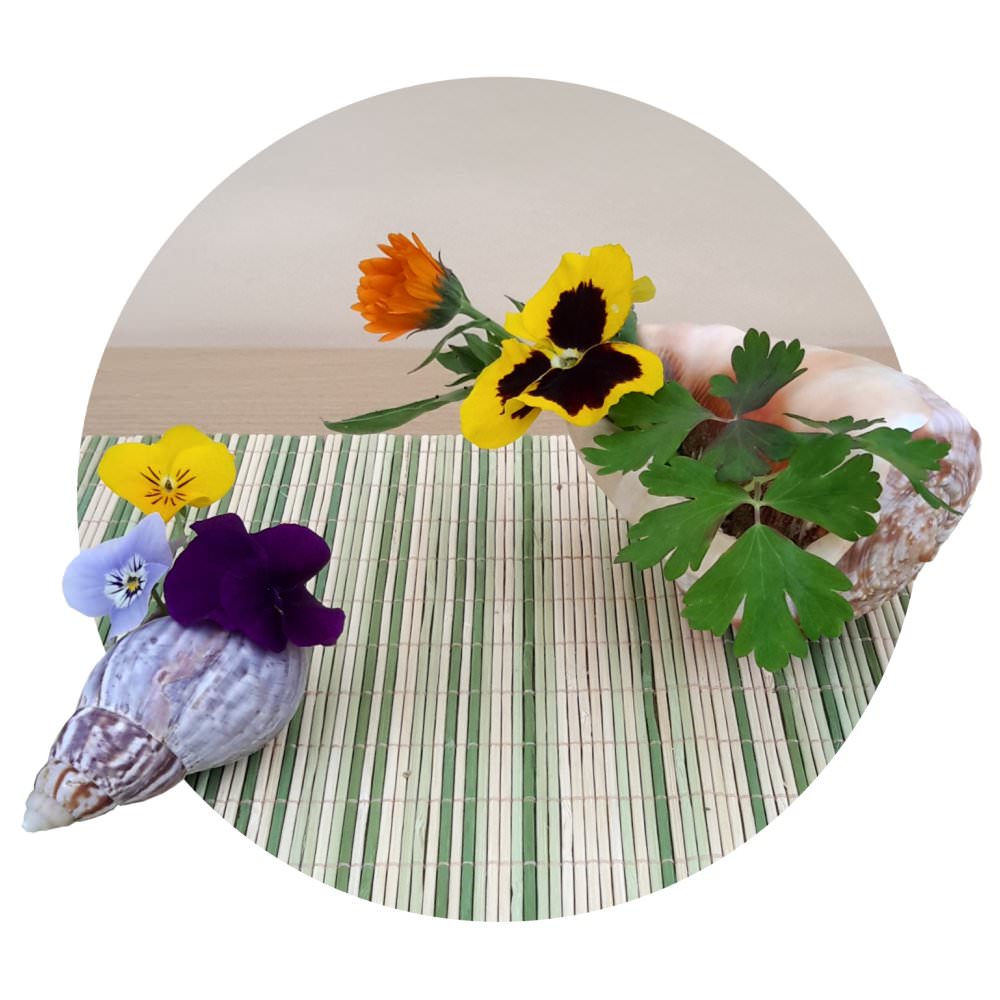 Respect nature by remembering to place water in the shell once your arrangement is complete.
